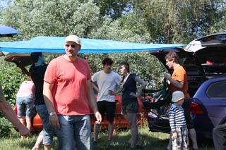 Der Möwensee bot noch weitere hübsche Uferplätze und unsere Tauchmannschaft fand auch wieder eine passende wassernahe Stelle für all Autos, Faltsitze, Planendächer und zahlreiche Utensilien-Kisten, Kästen, Säcke und Taschen. Bei herrlichstem Wetter konnte der See ein zweites Mal erforscht werden, die Tauchlehrlinge bildeten sich intensiv weiter und testeten ihre Fähigkeiten. Das alles ermüdete auch den stärksten Mann.