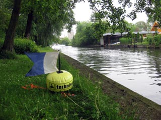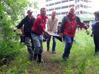 Wir rückten am 1. Juni, von Uta perfekt organisiert, mit acht Tauchern, zweiundzwanzig Helfern und dem bewährten Team der BSR mit LKW und Hebezeug an. Ergebnis von zwei Stunden harter Arbeit unter Wasser (Sicht null Zentimeter) und auf dem Land: 18 Fahrräder, 6 Einkaufswagen, alle gut gefüllt mit den Dingen des täglichen Bedarfs wie Eimern, Kochtöpfen und so weiter, dazu drei große Baustellenabsperrungen, Verkehrszeichen, Rohre unterschiedlichster Abmessungen, ein Stück Spundwand (ca. 150kg), dicke Stromkabel (ca. 8m), Autoreifen unter- schiedlicher Größe, Blechplatten, Kinderwagen, Gartenbänke, Spitzhacken ...